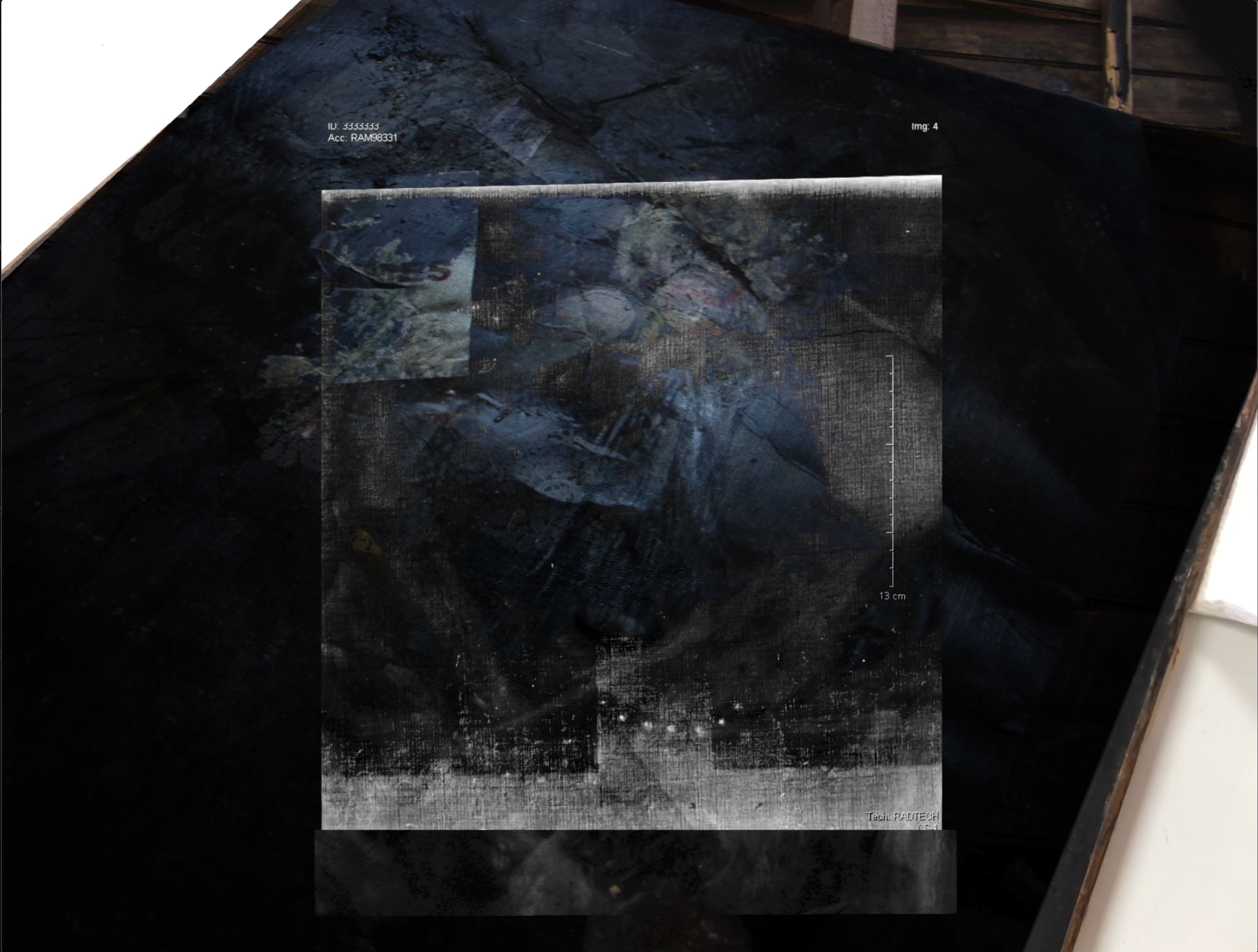 In line with the artists’ tendency to recover older, lost, damaged or forgotten works of their own across different media, a minor piece of damage (2020) takes as its subject Sid Iandovka’s paintings. Through the act of film editing and visual layering, a minor piece of damage is less about documenting the canvasses as they originally were, or even in their current state, than it is an opportunity to integrate these paintings as objects within an entirely new structure of visual images.