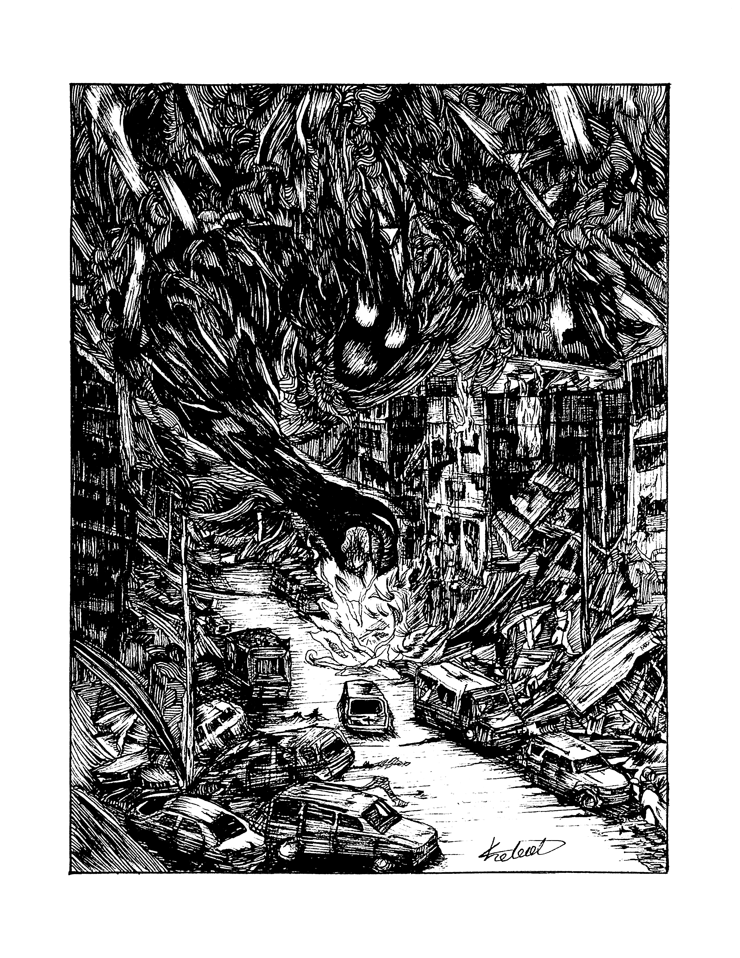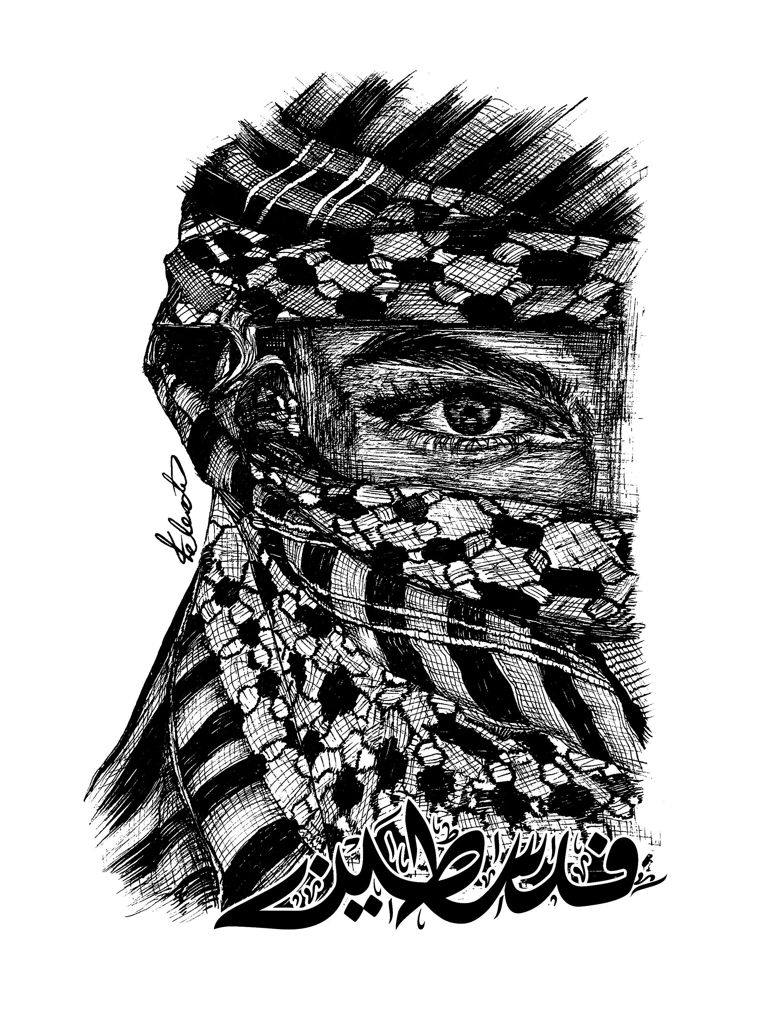 Kholoud Hammad is a Palestinian artist, illustrator, and graphic designer born in Gaza where she still lives. Repeatedly displaced in Northern Gaza with her family since October, 2023, she continues to make intricate and beautiful artwork about the beauty of Palestine and symbols of Palestinian identity and liberation. Her work is imbued with an overwhelming spirit of resistance, depicting heroic figures in epic tableaux, whirlwind scenes of chaos and destruction, or schematic views of exploding buildings. As she herself has written: “My art springs from the reality I live every day—harsh scenes of destruction, loss, and resilience... Art became my voice when words fail me. It is my way to process pain, resist injustice, and share my truth with the world.”